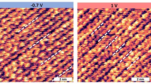 The dependence of the adsorbed structure of an electrolyte solution on an electrode as a function of applied potential can be directly imaged at the atomic scale using the SPM facilities at CMCA. This provides a profound understanding of the interactions of electrolytes with electrodes, and thus enables the rational design of versatile and cost-effective electrolytes for advanced electrical devices, including metal-ion batteries, and supercapacitors.