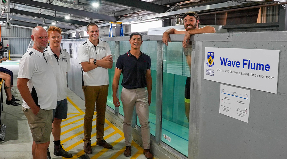 The team used the 50-metre long wave flume at UWA's Coastal and Offshore Engineering Laboratory to understand the effects of waves.
