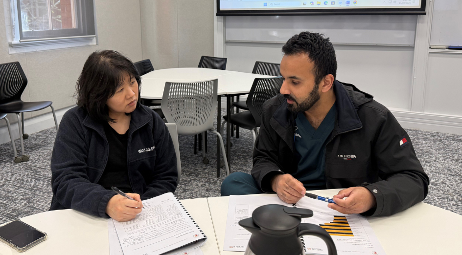 Image: Dr Aliya and Dr Bilal in a communications workshop.