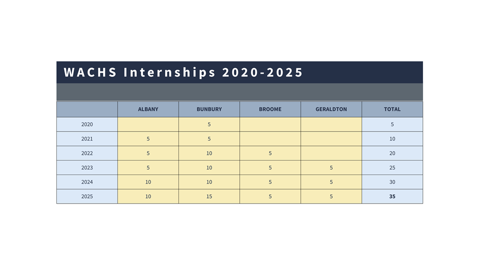 Associate Professor Kirke said the school’s priority now was to secure funding to expand Final Year student numbers and sites from 2027 to take up the growing number of WACHS internships available.