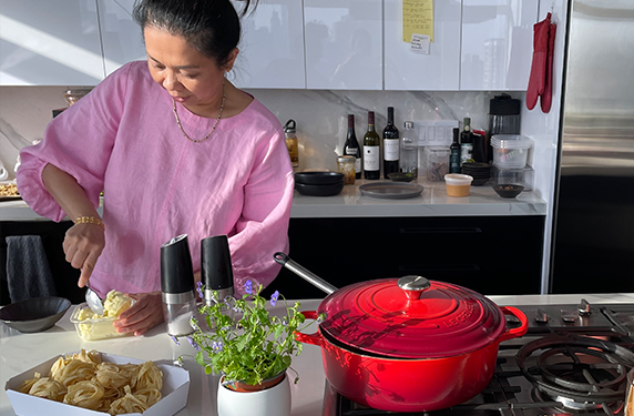 As both a teacher and family doctor, I can weave together knowledge, care and creativity. If someone leaves inspired to try a new recipe, experiment with an unfamiliar ingredient, or reflect on how their food shapes their health and happiness – that’s meaningful to me. The most rewarding is welcoming guests into our home, sharing a glass of Australian wine and a home-cooked meal!
