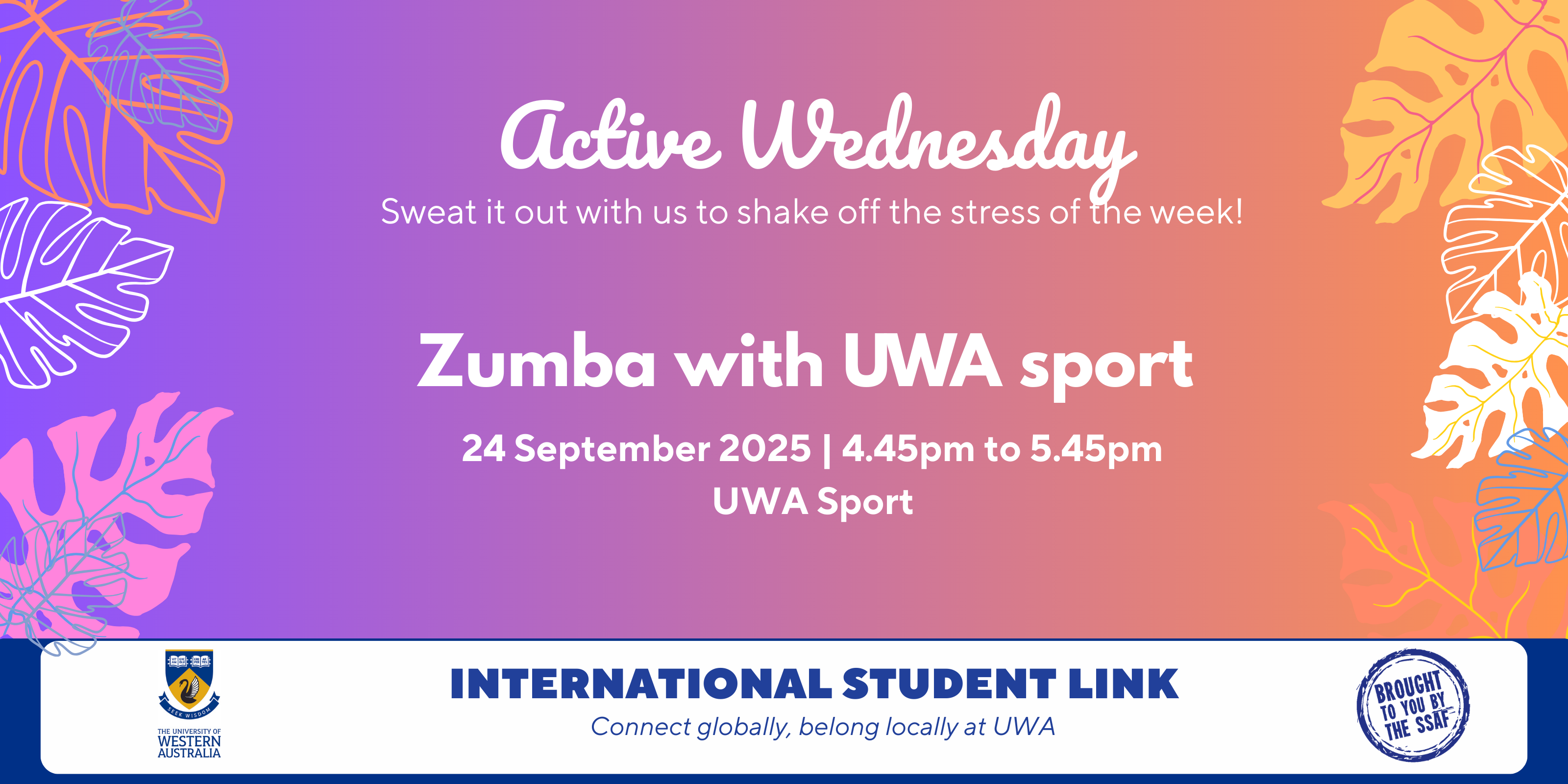 Shake off the mid-week stress with a vibrant Zumba session as part of Internationalisation Week. Open to all staff and students, this energising class blends music and movement in a fun, inclusive environment—no experience needed, just come along and get moving!Date: Wednesday 24 September