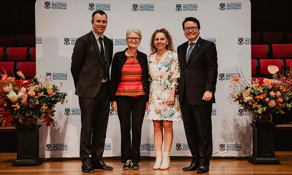 [Photo L to R: Professor John Chandler, Dean and Head of School Professor Natalie Skead, The Honourable Kim Beasley AC, Professor Richard Bartlett]
